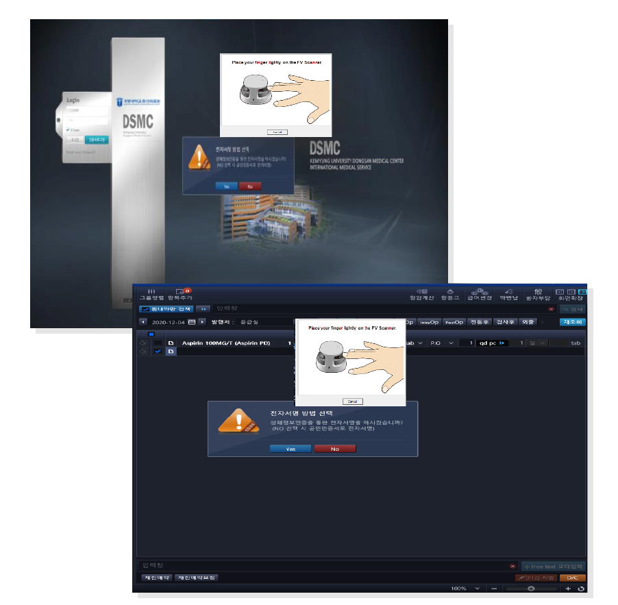EMR 로그인 및 전자서명 적용 이미지
