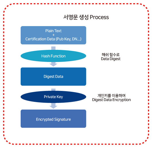 - 생체정보 등록 후 최초 생체정보 로그인 시, 내부 전자서명 알고리즘을 통해 생체정보를 이용한 인증서 생성 및 등록